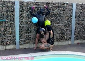 Was denkst Du kann ich mich mit meiner geilen Kiste komplett auf einen Ballon setzen ohne das er platzt Blase sie auch komplett fuer Dich auf... Ich hab hier 3 Ballons fuer Dich ... 3 Versuche fuer mich ... looner luftballons